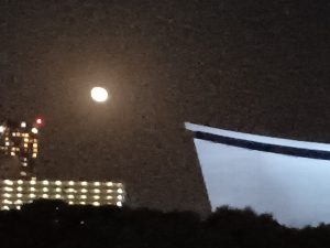 オレンジ色の目のような月だったんだけど、この写真じゃわからないなあ。